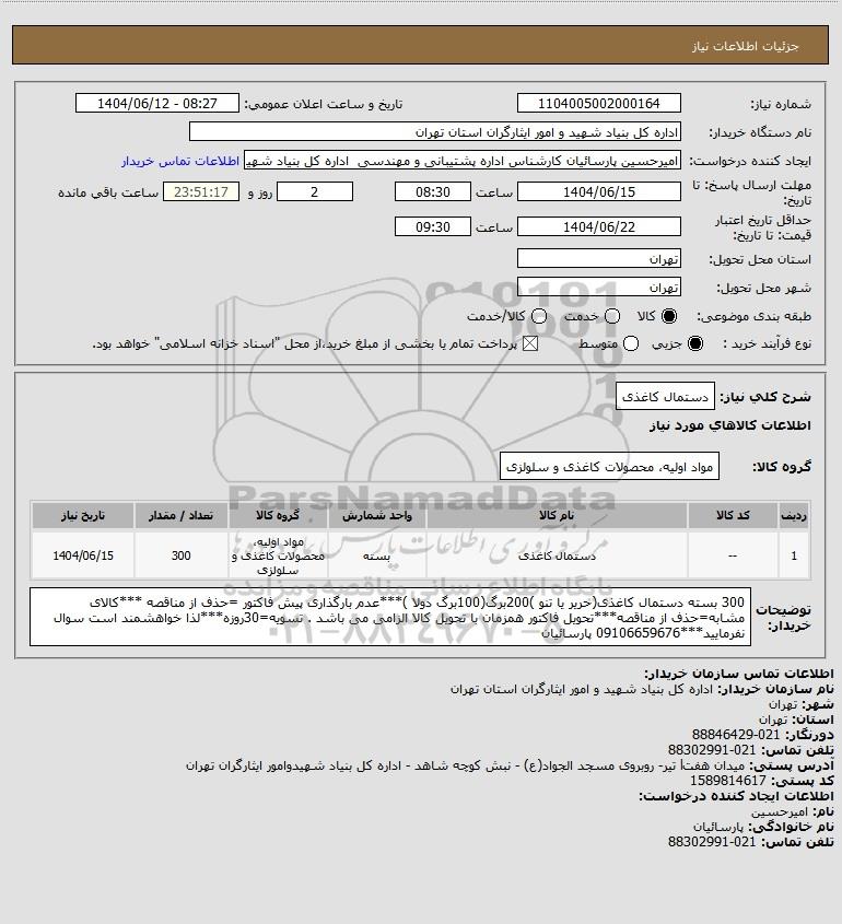 نام دستگاه خریدار:اداره کل بنیاد شهید و امور ایثارگران استان تهران