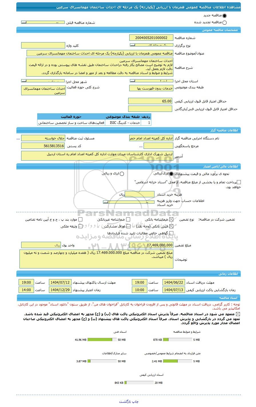 | مبلغ تضمین | 17,469,000,000 | واحد پول | ریال |