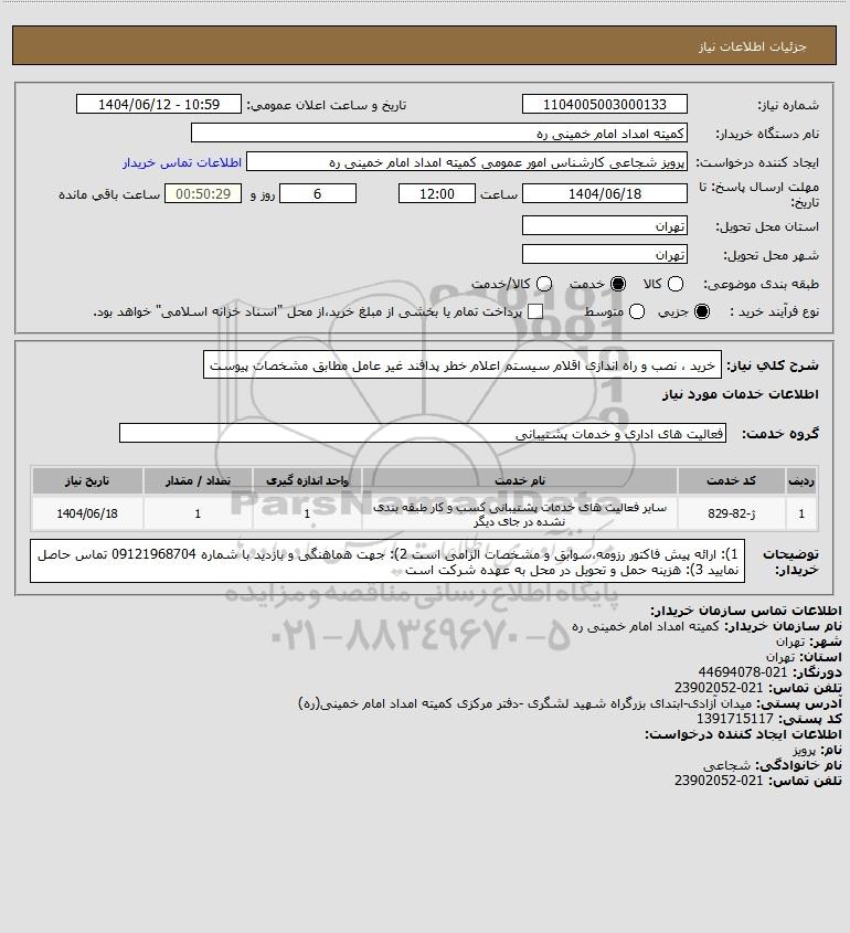 نام دستگاه خریدار:کمیته امداد امام خمینی ره