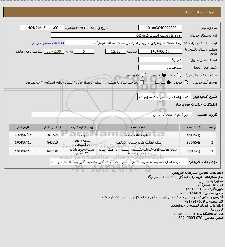 نام دستگاه خریدار:اداره کل پست استان هرمزگان