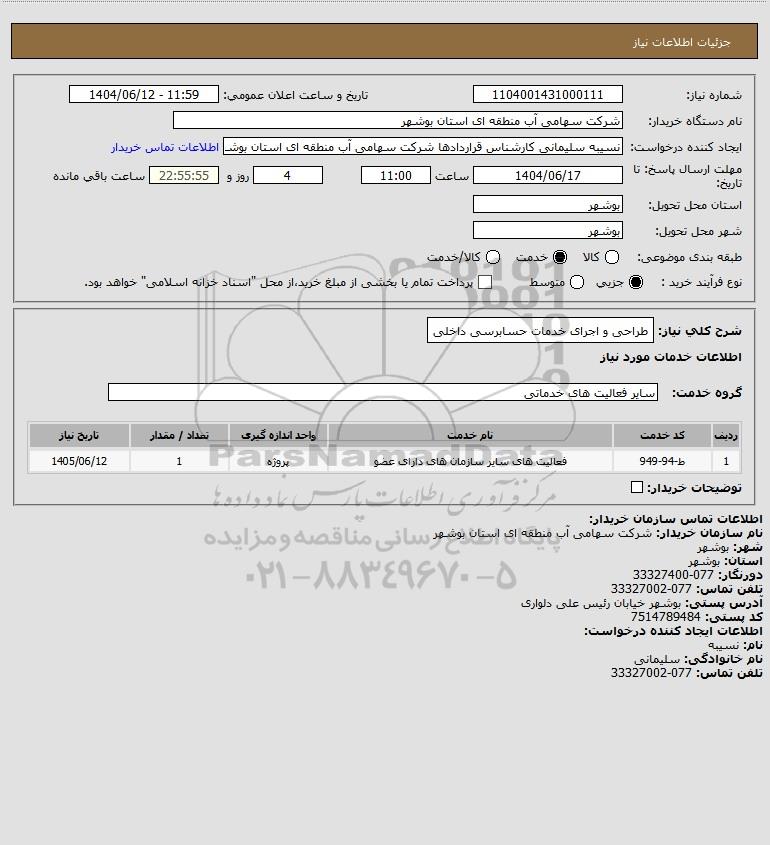 شرح کلی نیاز: طراحی و اجرای خدمات حسابرسی داخلی