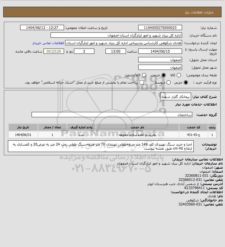 شرح کلی نیاز: پیمانکار گلزار شهدا