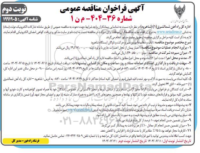 آگهی فراخوان مناقصه عمومی شماره 36-404- م ن 1