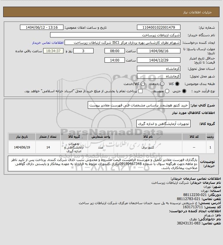 | 1 | -- | کنتور برق | عدد | تجهیزات آزمایشگاهی و اندازه گیری | 14 | 1404/06/19 |