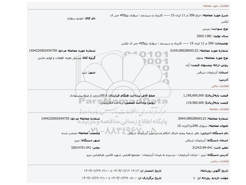 | عنوان معامله: سواری 359م11ایران 15 | ||
