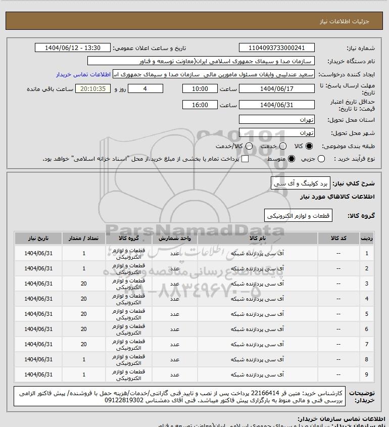 شرح کلی نیاز: برد کولینگ و آی سی