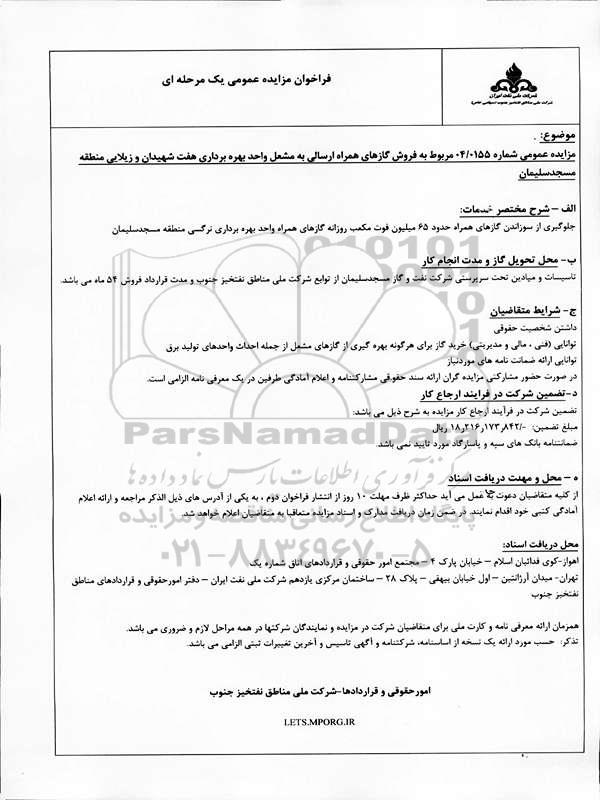 مزایده عمومی شماره 04/0155 مربوط به فروش گازهای همراه ارسالی به مشعل واحد بهره برداری هفت شهیدان و زیلایی منطقه مسجد سلیمان