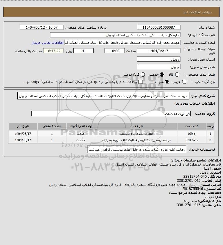 استعلام خرید خدمات امن سازی و مقاوم سازی زیرساخت فناوری اطلاعات اداره کل بنیاد مسکن انقلاب اسلامی استان اردبیل, استعلام خرید خدمات امن سازی و مقاوم سازی زیرساخت فناوری اطلاعات اداره کل بنیاد مسکن انقلاب اسلامی استان اردبیل