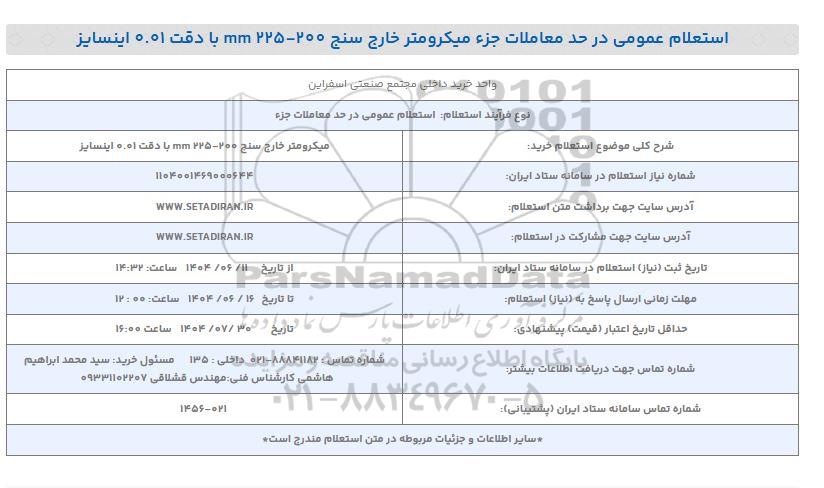 استعلام عمومی در حد معاملات جزء میکرومتر خارج سنج 200 - 225mm با دقت 0.01 اینسایز