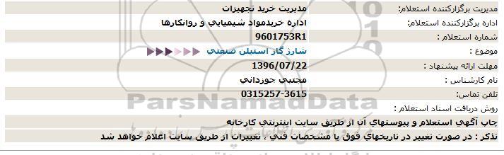اداره برگزارکننده استعلام: اداره خریدمواد شیمیایی و روانكارها