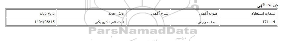 | 171114 | مبدل حرارتی | استعلام الکترونیکی | 1404/06/15 |