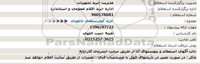 اداره برگزارکننده استعلام: اداره خرید اقلام عمومی و استاندارد