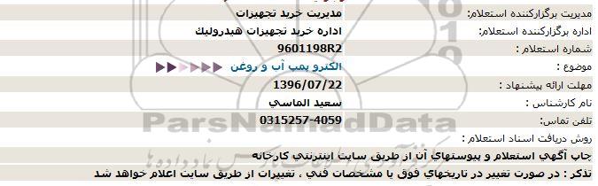اداره برگزارکننده استعلام: اداره خرید تجهیزات هیدرولیک