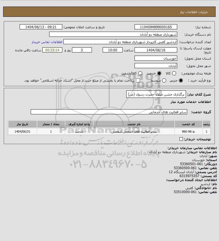 نام دستگاه خریدار:شهرداری منطقه دو آبادان