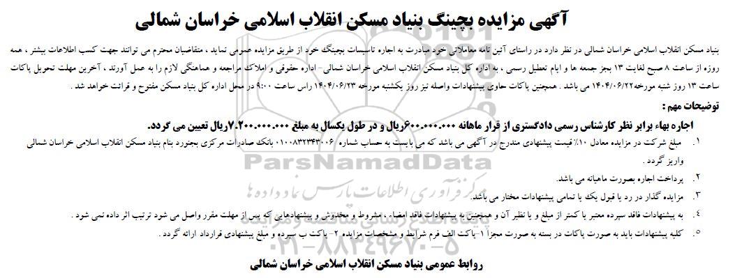 آگهی مزایده بچینگ بنیاد مسکن انقلاب اسلامی خراسان شمالی ؟