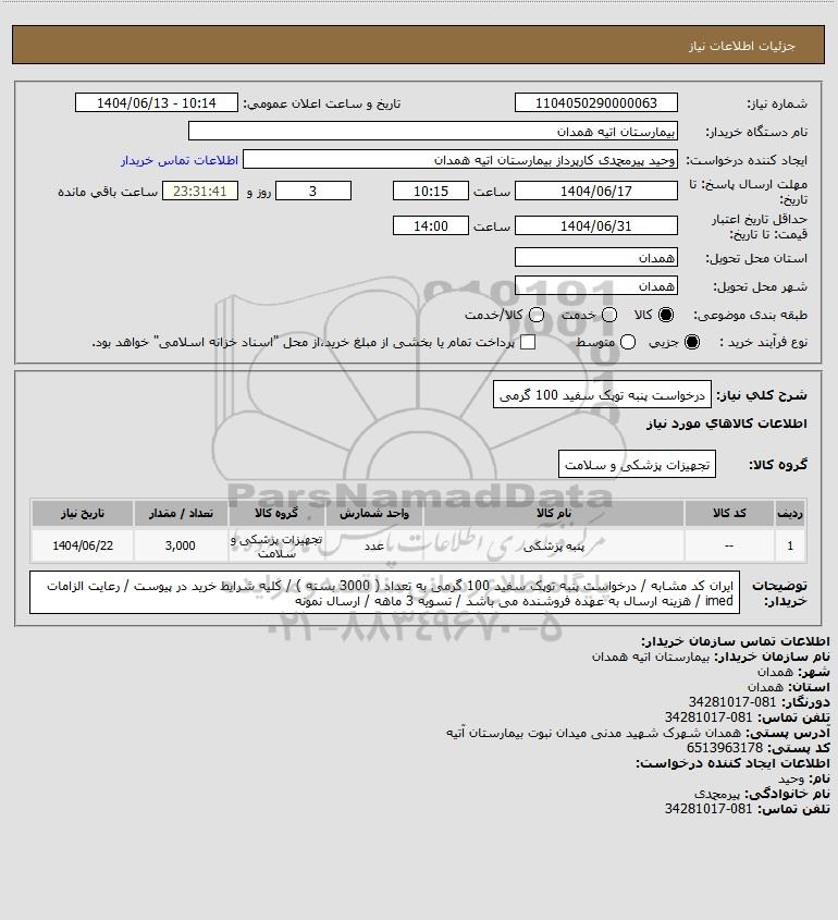 نام سازمان خریدار: بیمارستان اتیه همدان