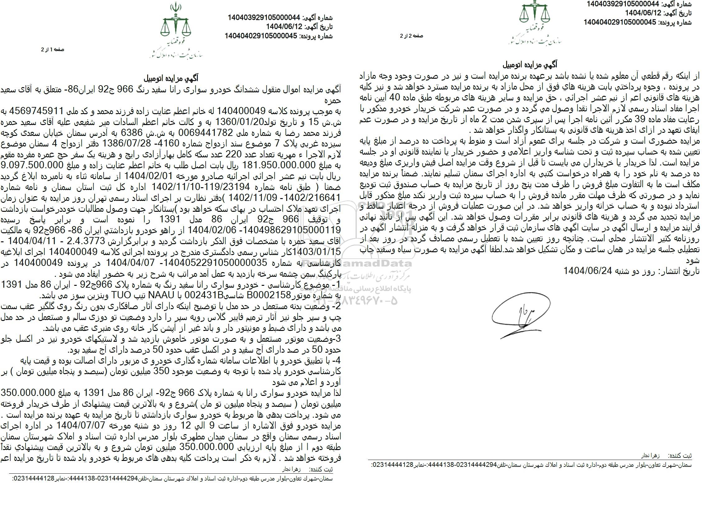 شماره آگهی 140403929105000044