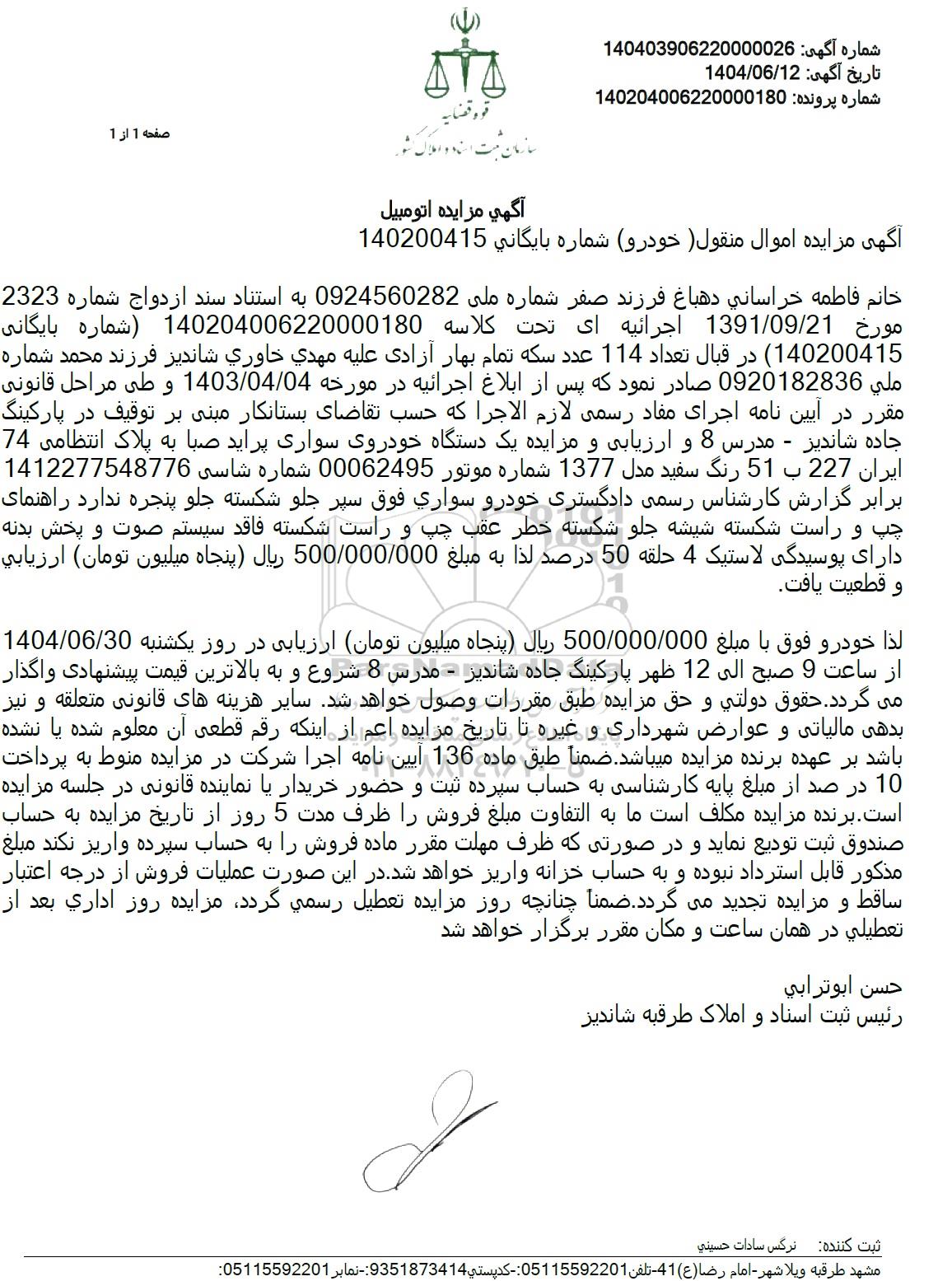 تاریخ مزایده : از ساعت 9 الی 12 روز یکشنبه مورخ 1404.6.30