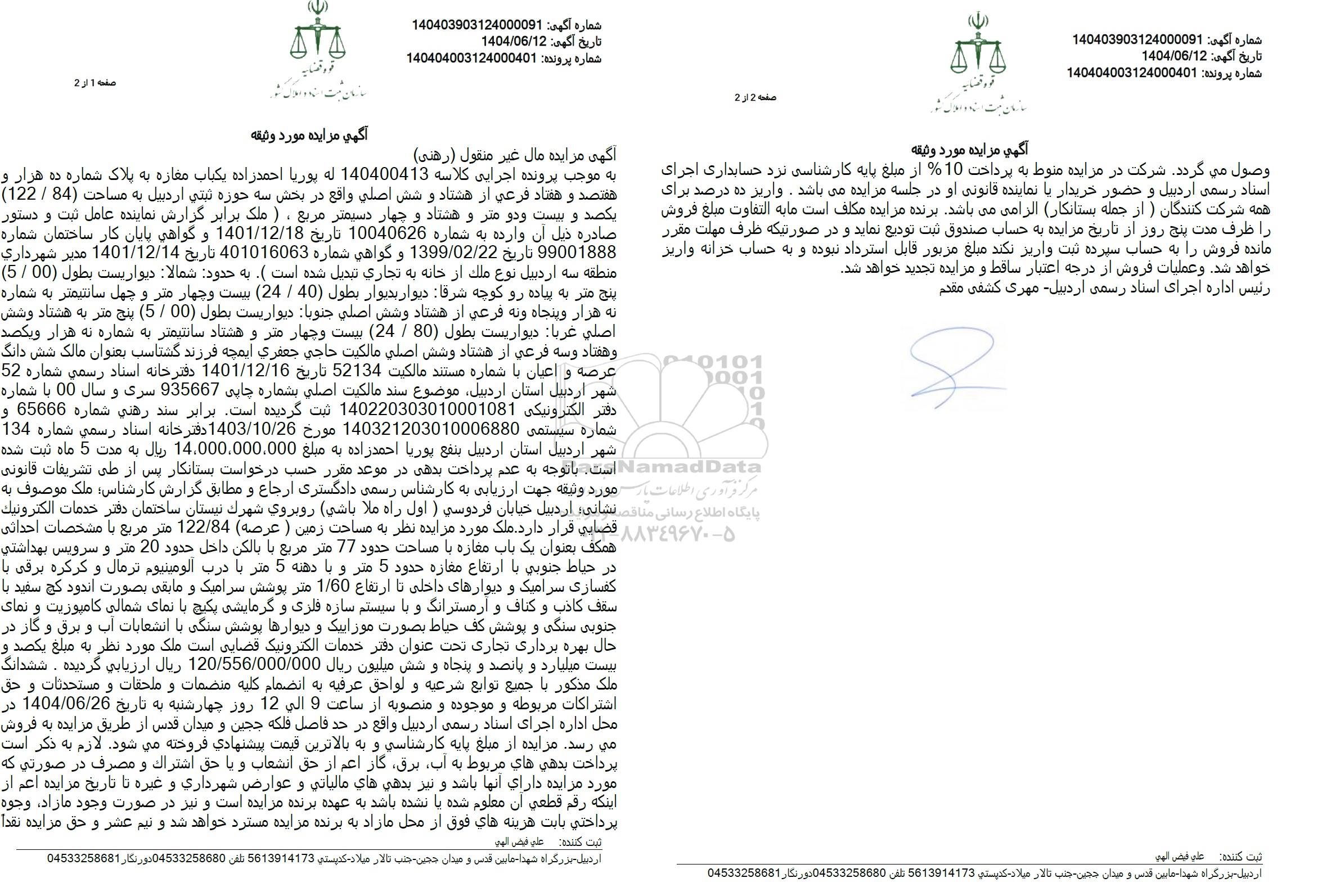 14 مزایده فروش املاک و مستغلات 9742294 1404/08/01 new not special not payed البرز