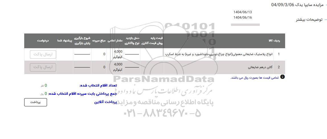 مزایده انواع پلاستیک ضایعاتی معمولی ..., مزایده انواع پلاستیک ضایعاتی معمولی ...
