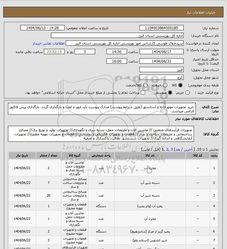 | 4 | -- | پمپ آب (واتر پمپ) | دستگاه | قطعات و تجهیزات تهویه مطبوع | 1 | 1404/06/22 |