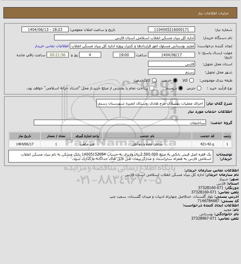 نام سازمان خریدار: اداره کل بنیاد مسکن انقلاب اسلامی استان فارس