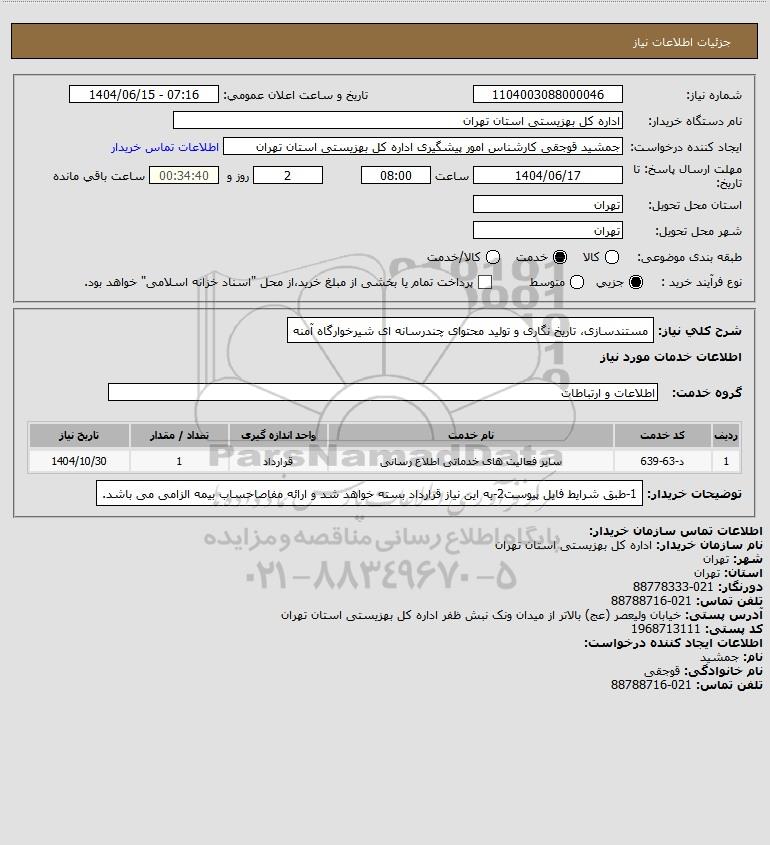 نام دستگاه خریدار:اداره کل بهزیستی استان تهران