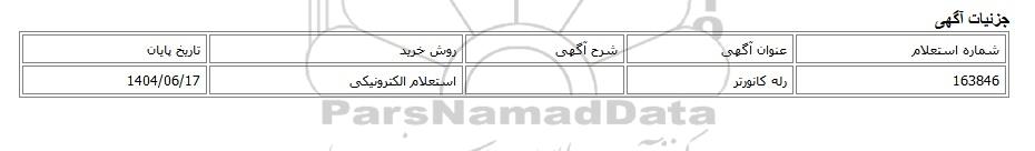 | 163846 | رله کانورتر | استعلام الکترونیکی | 1404/06/17 |