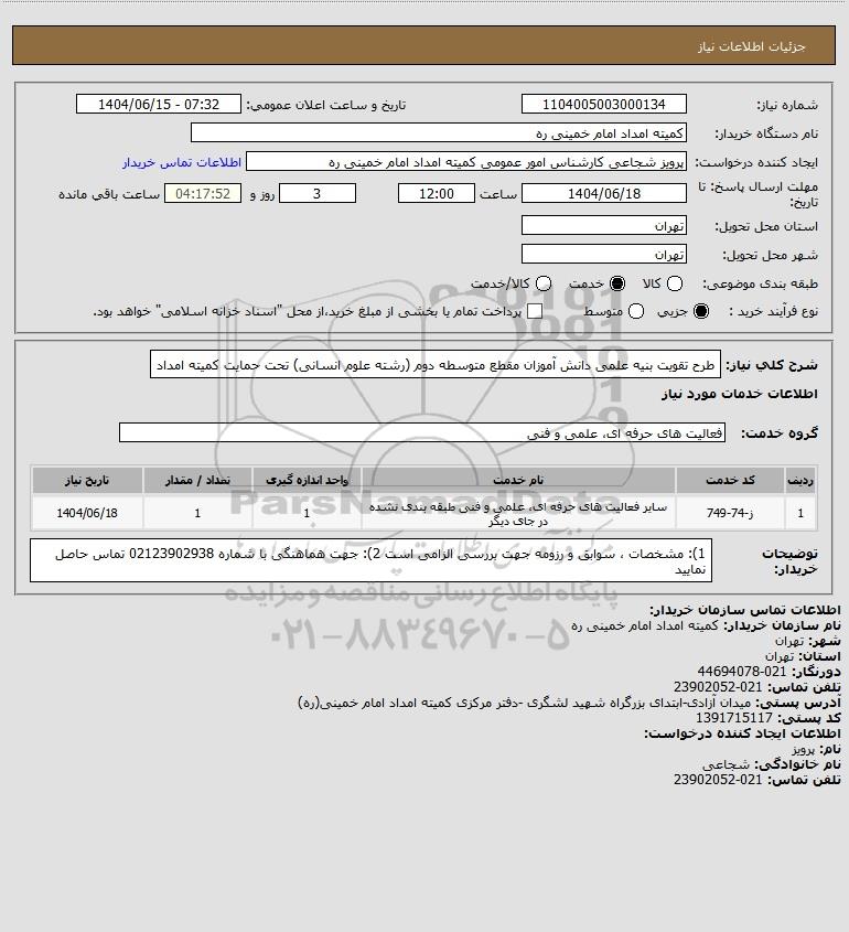 شرح کلی نیاز: طرح تقویت بنیه علمی دانش آموزان مقطع متوسطه دوم (رشته علوم انسانی) تحت حمایت کمیته امداد