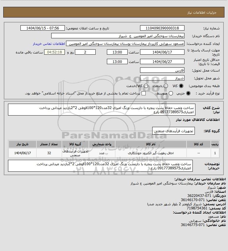 نام سازمان خریدار: بیمارستان سوختگی امیر المومنین ع شیراز