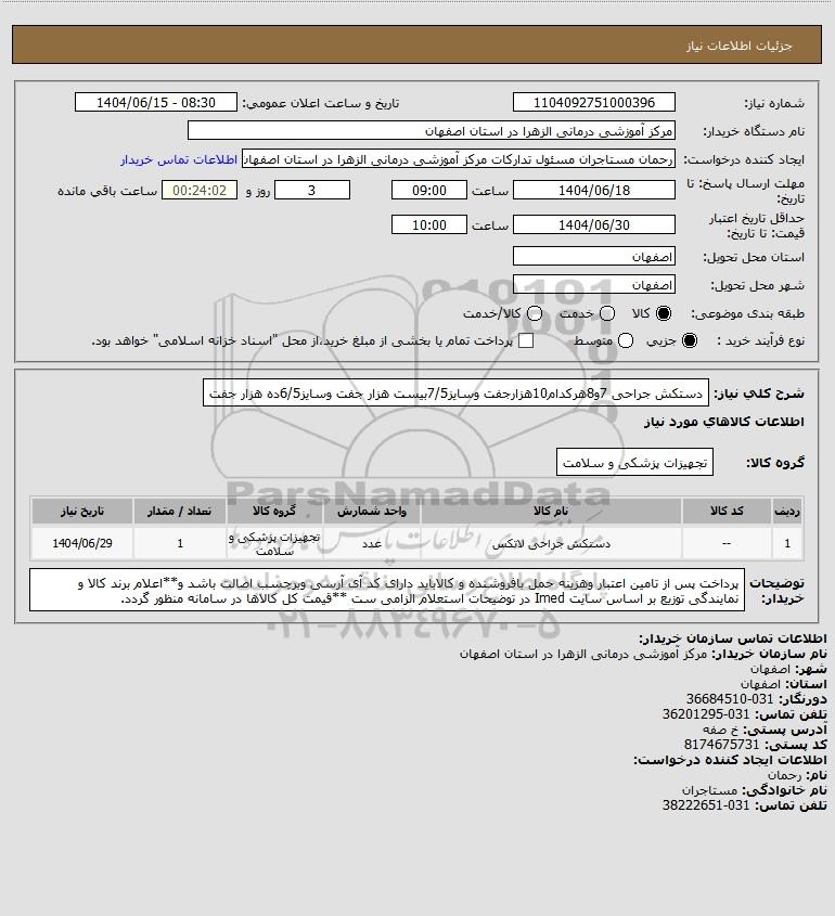 نام سازمان خریدار: مرکز آموزشی درمانی الزهرا در استان اصفهان