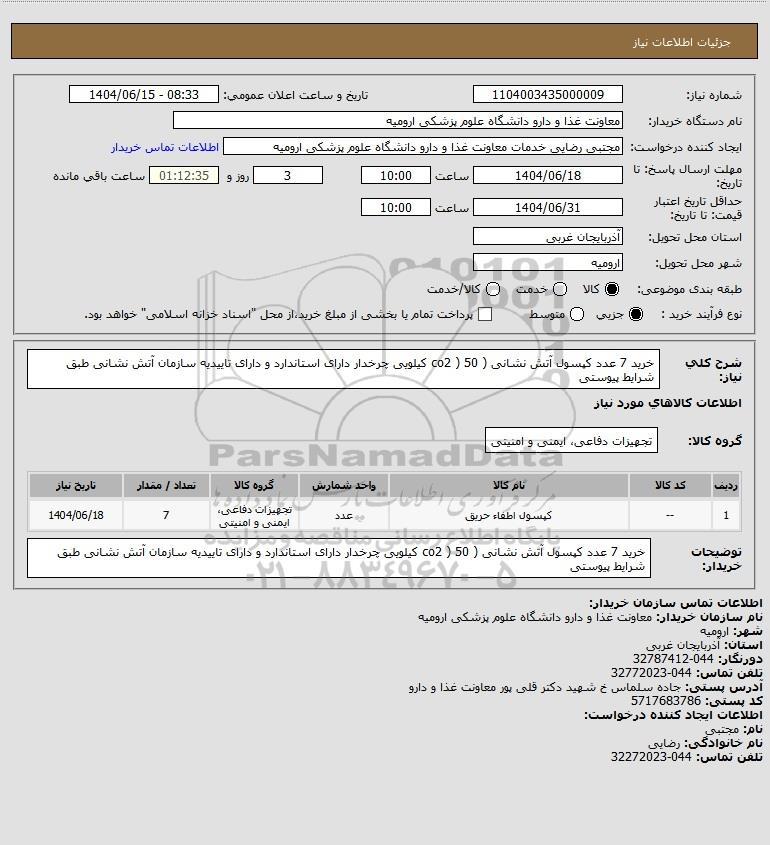نام دستگاه خریدار:معاونت غذا و دارو دانشگاه علوم پزشکی ارومیه
