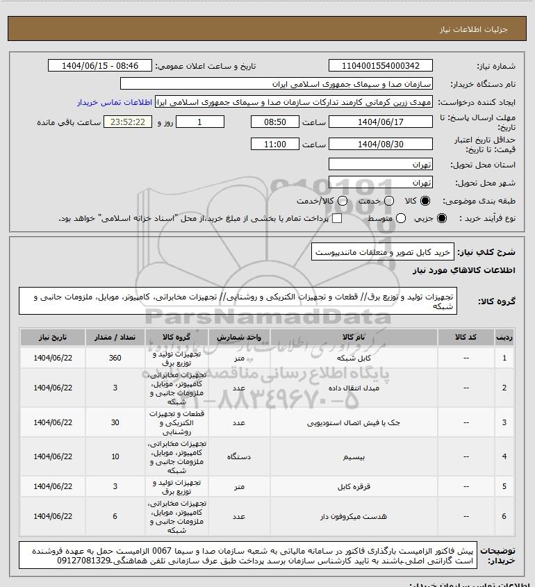 نام دستگاه خریدار:سازمان صدا و سیمای جمهوری اسلامی ایران