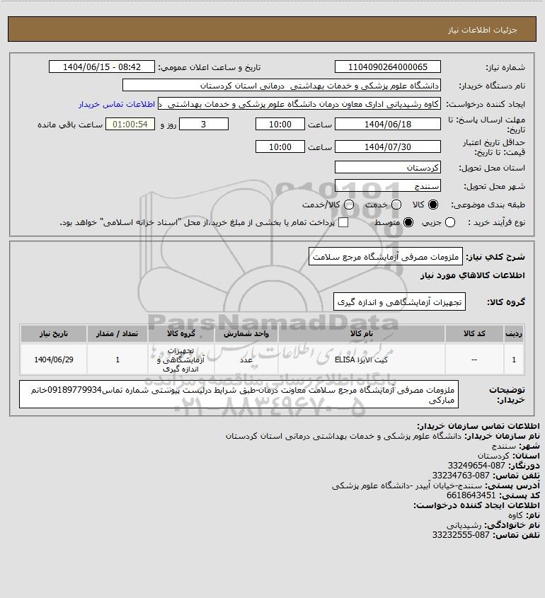 نام دستگاه خریدار:دانشگاه علوم پزشکی و خدمات بهداشتی درمانی استان کردستان
