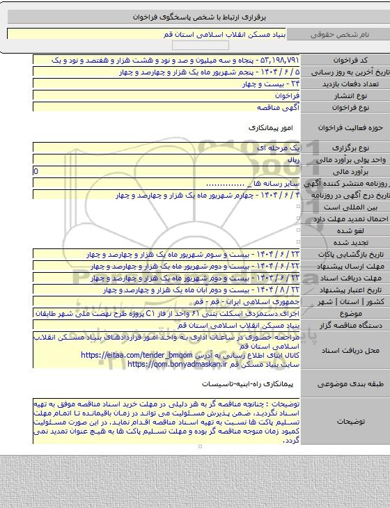 مناقصه اجرای دستمزدی اسکلت بتنی ۶۱ واحد از فاز C۱ پروژه طرح نهضت ملی شهر طایقان, مناقصه, اجرای دستمزدی اسکلت بتنی ۶۱ واحد از فاز C۱ پروژه طرح نهضت ملی شهر طایقان