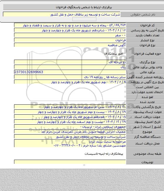 3 مناقصه عملیات اجرای خط انتقال و احداث جاده دسترسی از چاه ... 9810471 1404/08/15 new not special not payed خوزستان