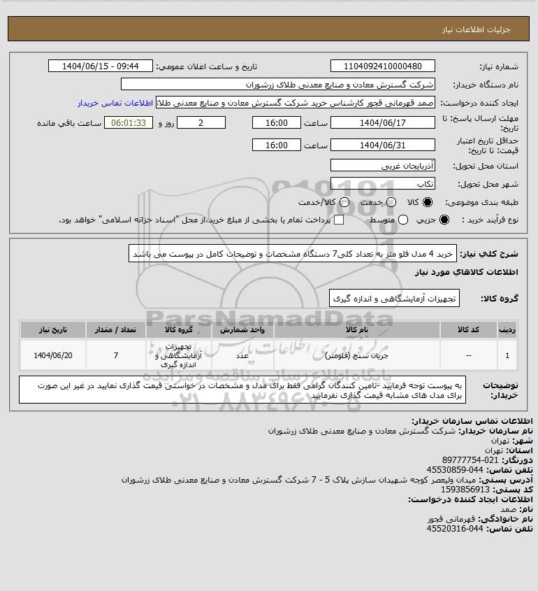 شرح کلی نیاز: خربد 4 مدل فلو متر به تعداد کلی7 دستگاه مشخصات و توضیحات کامل در پیوست می باشد