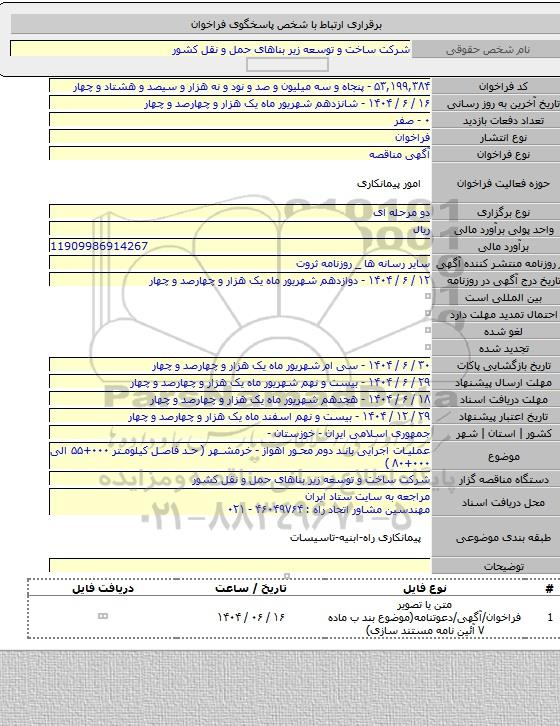 این مناقصه در تاریخ 1404/06/15 شروع و مهلت آن تا تاریخ 1404/06/18 میباشد.