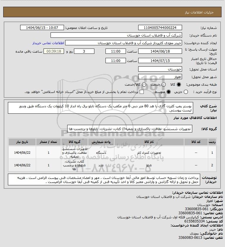 نام دستگاه خریدار:شرکت آب و فاضلاب استان خوزستان