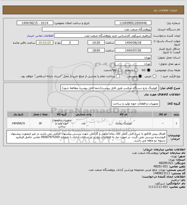 نام دستگاه خریدار:پژوهشگاه صنعت نفت