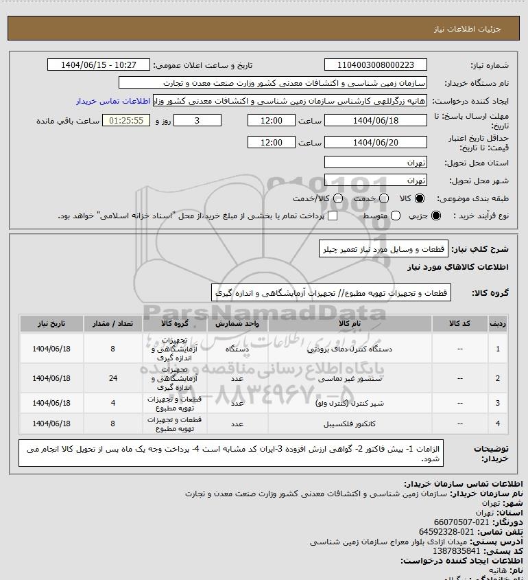 نام دستگاه خریدار:سازمان زمین شناسی و اکتشافات معدنی کشور وزارت صنعت معدن و تجارت