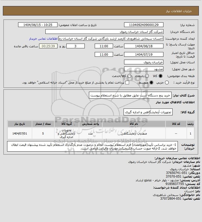 نام دستگاه خریدار:شرکت گاز استان خراسان رضوی