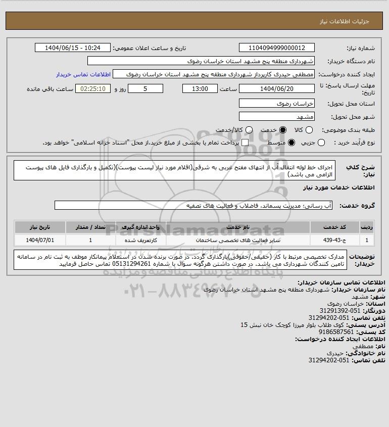 نام سازمان خریدار: شهرداری منطقه پنج مشهد استان خراسان رضوی