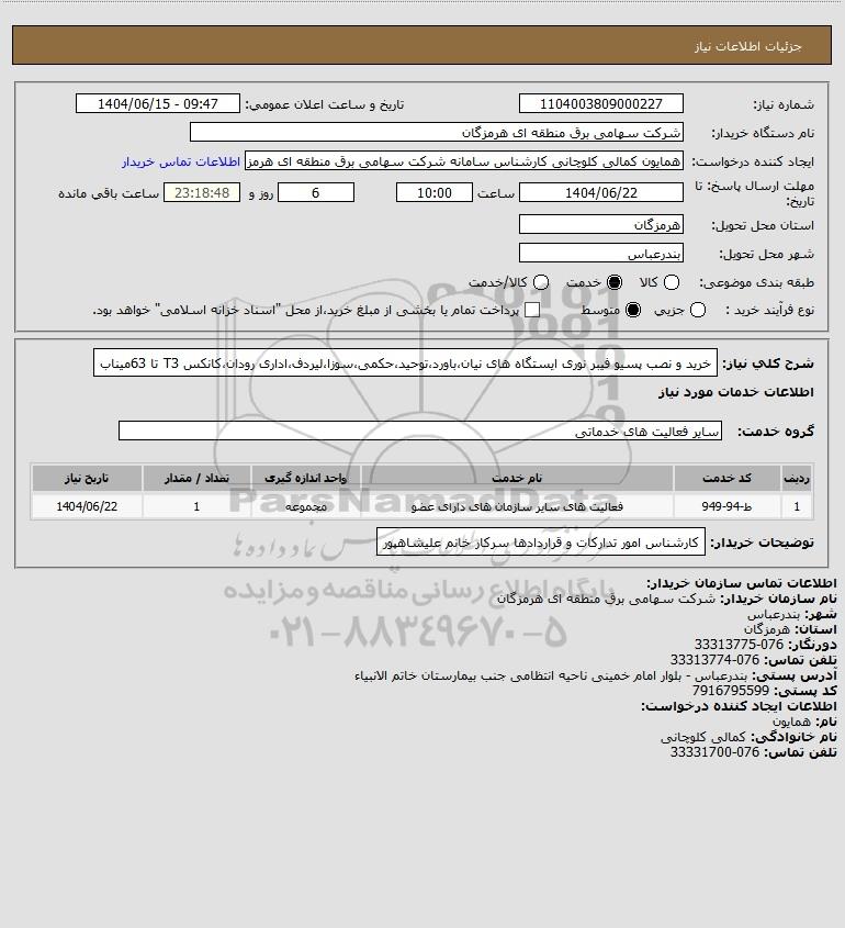 نام دستگاه خریدار:شرکت سهامی برق منطقه ای هرمزگان