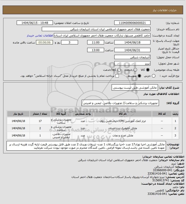 نام دستگاه خریدار:جمعیت هلال احمر جمهوری اسلامی ایران استان اذربایجان شرقی
