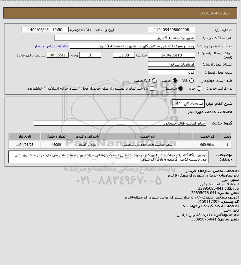نام دستگاه خریدار:شهرداری منطقه 9 تبریز