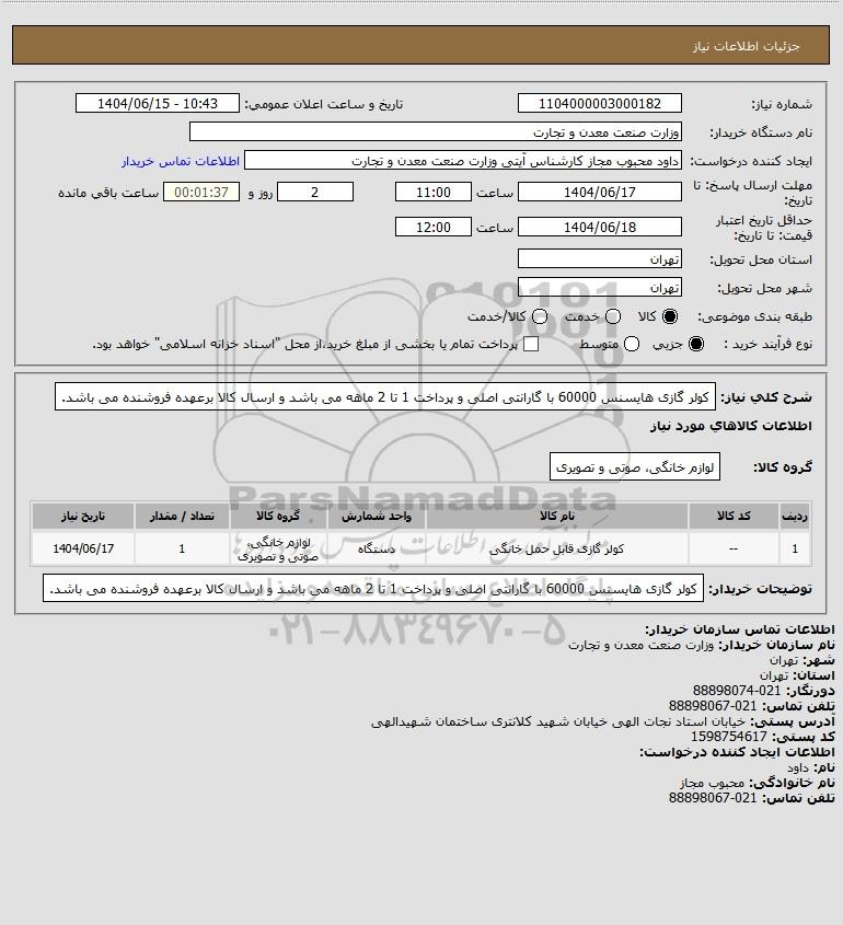 نام دستگاه خریدار:وزارت صنعت معدن و تجارت