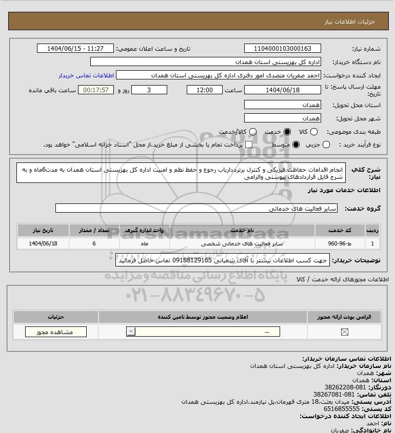 استعلام انجام اقدامات حفاظت فیزیکی و کنترل برترددارباب رجوع و حفظ نظم و امنیت اداره کل بهزیستی استان همدان به مدت6ماه و به شرح فایل قراردادهای پیوستی والزامی, استعلام انجام اقدامات حفاظت فیزیکی و کنترل برترددارباب رجوع و حفظ نظم و امنیت اداره کل بهزیستی استان همدان به مدت6ماه و به شرح فایل قراردادهای پیوستی والزامی