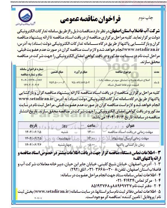 مناقصه اصلاح شبکه فاضلاب ...- چاپ دوم , مناقصه اصلاح شبکه فاضلاب ...- چاپ دوم