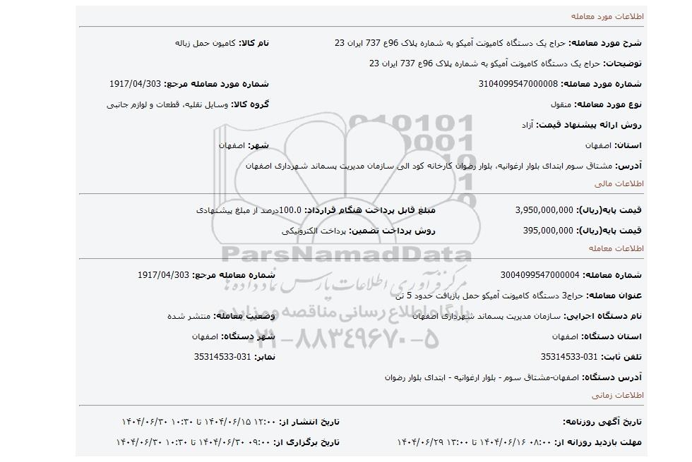 عنوان معامله: حراج3 دستگاه کامیونت آمیکو حمل بازیافت حدود 5 تن